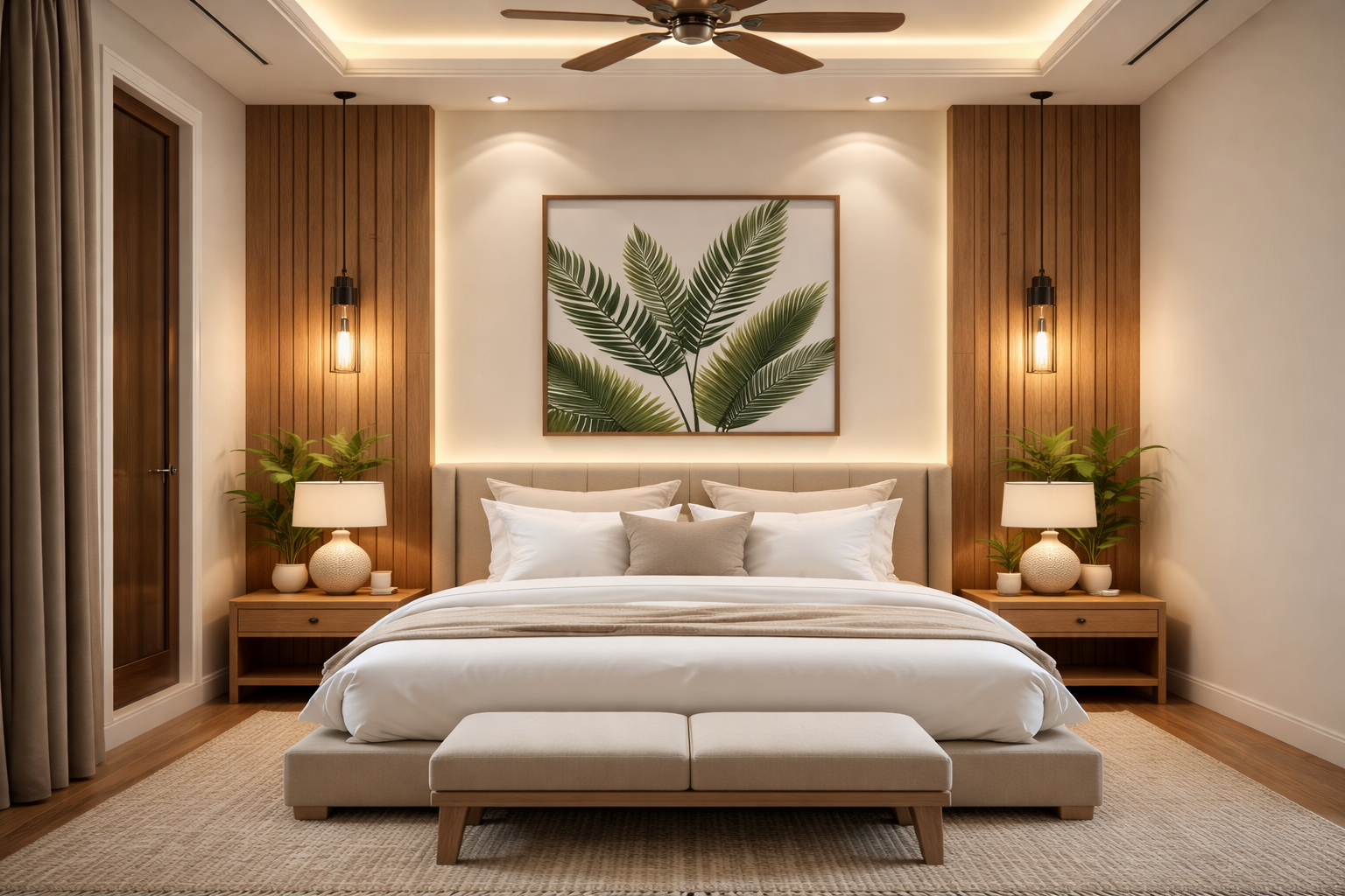 The Natural Serenity Bed creates a calm and peaceful atmosphere with its refined, minimalist design. Featuring a plush, neutral-colored upholstered frame, this bed effortlessly blends comfort with sophistication. The soft, tailored headboard offers perfect support, while the clean, modern lines bring a sense of tranquility to your space. The design incorporates natural elements, such as wood finishes and soft textiles, adding warmth and serenity to the room.
